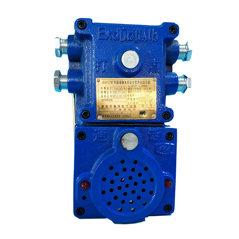 我公司開(kāi)發(fā)的KXH127 礦用隔爆兼本質(zhì)安全型聲光信號(hào)器(以下簡(jiǎn)稱信號(hào)器)為礦用隔爆兼本質(zhì)安全型,適用于井下具有爆炸性氣體環(huán)境的帶式運(yùn)輸和絞車運(yùn)輸?shù)男盘?hào)聯(lián)絡(luò)用。具有下列功能: